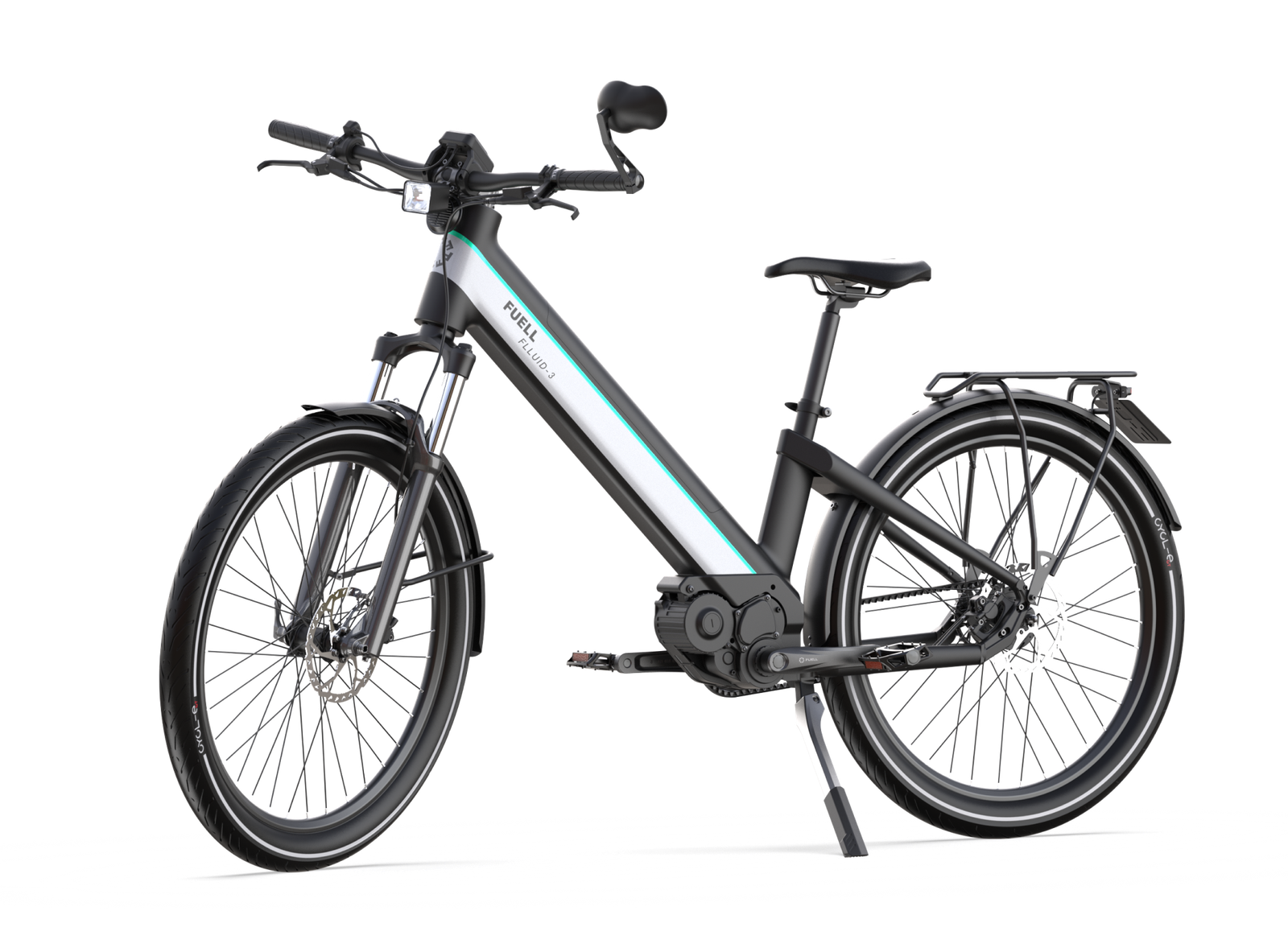 Flluid-3 and 3S maintain the best features from the original Fuell e-bike, including the Gates carbon belt, Tektro brakes, Suntour suspended fork, and more.